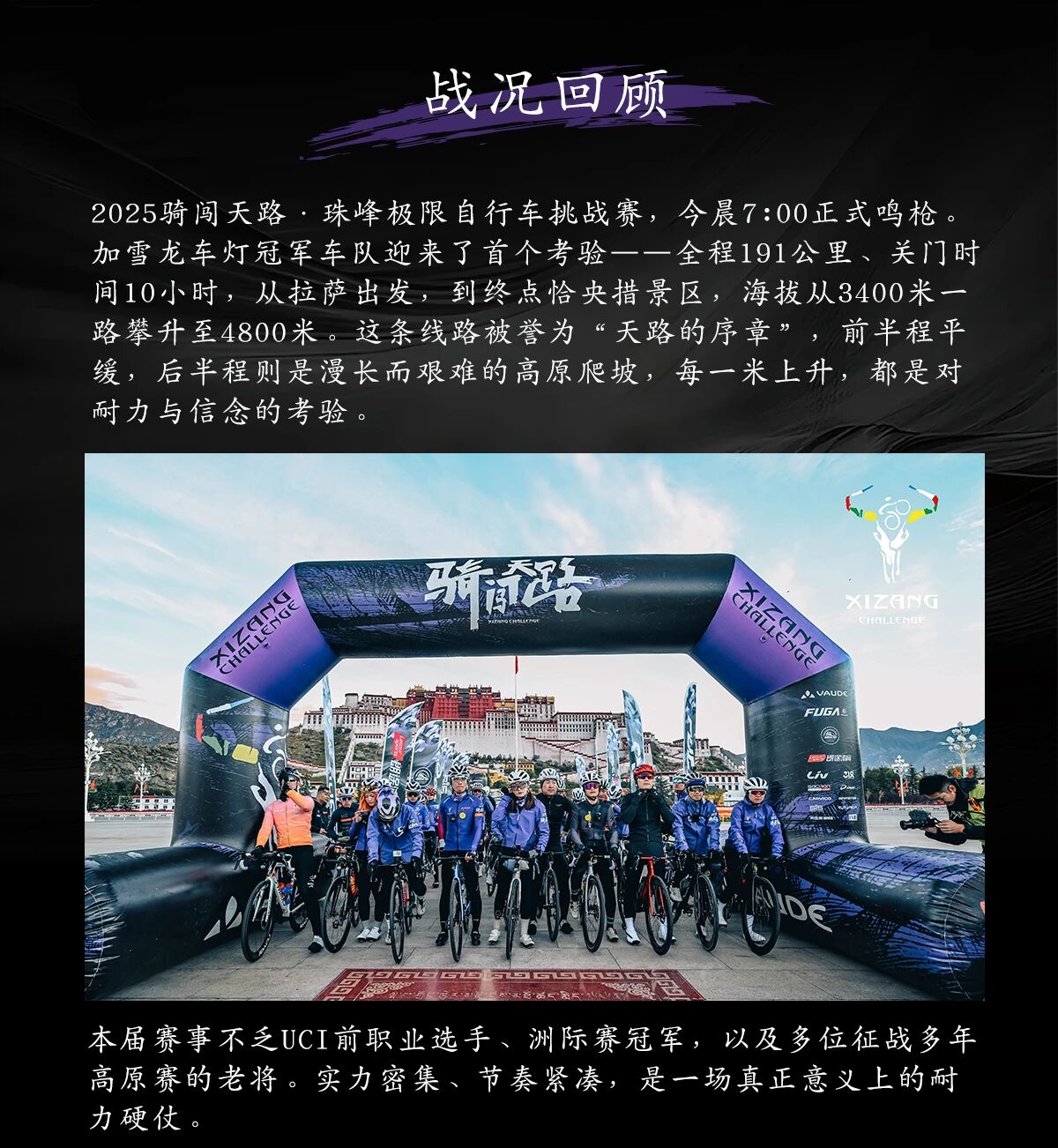 The Gaciron Champion Team faced their first trial: a grueling 191-kilometer (118-mile) stage from Lhasa to Chayang Cuo Scenic Area, with a strict 10-hour cut-off time. This route, known as the "Prelude to the Sky," began with gentle gradients before giving way to long, arduous climbs on the plateau. The altitude escalated relentlessly from 3,400 meters to 4,800 meters (11,155 ft to 15,748 ft), testing the riders' endurance and resolve with every single meter of ascent.