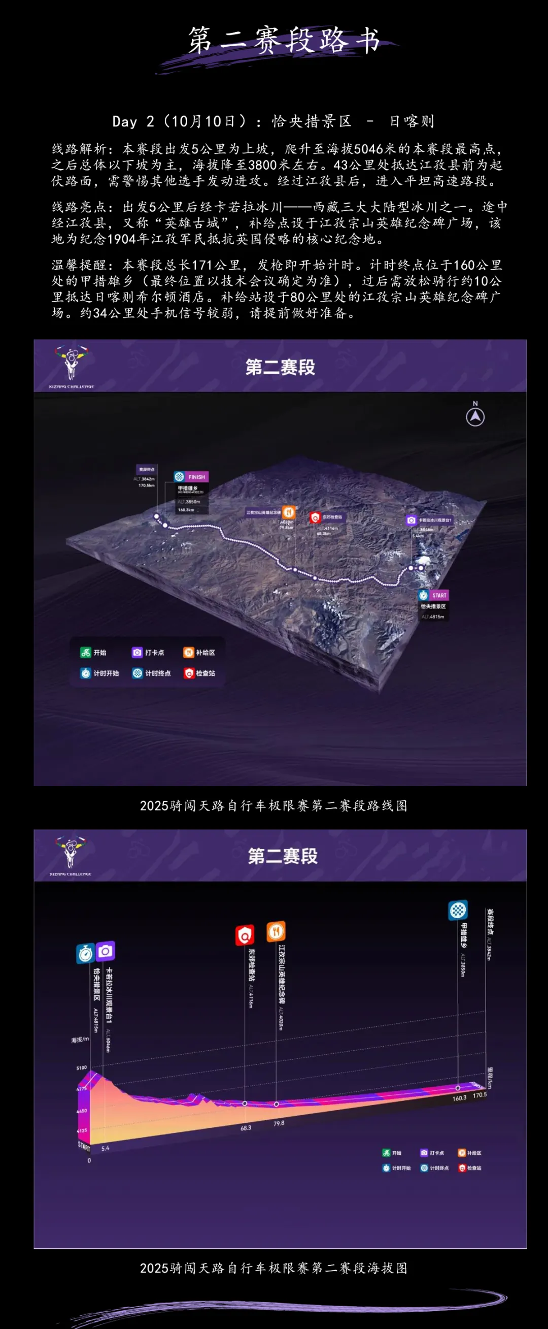 The stage kicks off with a challenging 5 km climb, ascending to its highest point at 5,046 meters above sea level. Following this, the route is predominantly downhill, descending to approximately 3,800 meters. Riders will face rolling terrain before arriving at Jiangzi County at the 43 km mark—a key section where attacks from competitors are highly likely. After passing through Jiangzi County, the course transitions into flat, high-speed highway sections.