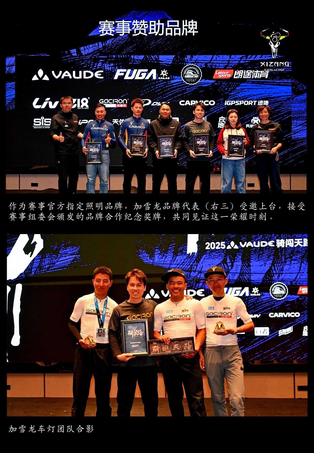 As the Official Lighting Partner of the event, a representative of Gaciron (third from right) was invited on stage to accept a commemorative medal for brand collaboration from the race committee, sharing in this honor.